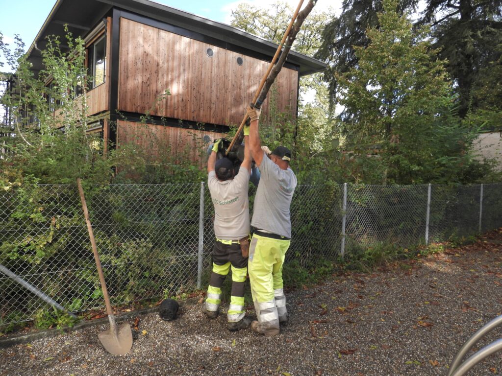 Beim Schulhaus Gabler in Zürich nahmen unsere Gärtner diverse Abbrucharbeiten vor, bevor sie die Rohplanie und die Erd- sowie Kanalisationsarbeiten erstellen konnten. Sie legten Fundamente, bauten Asphaltbeläge, Spezialbeläge und einen Korkbelag ein, errichteten Zäune, montierten Spielgeräte und kümmerten sich zusammen mit der Baumpflege der Stadt Zürich um die Erstellung schöner Grünflächen.