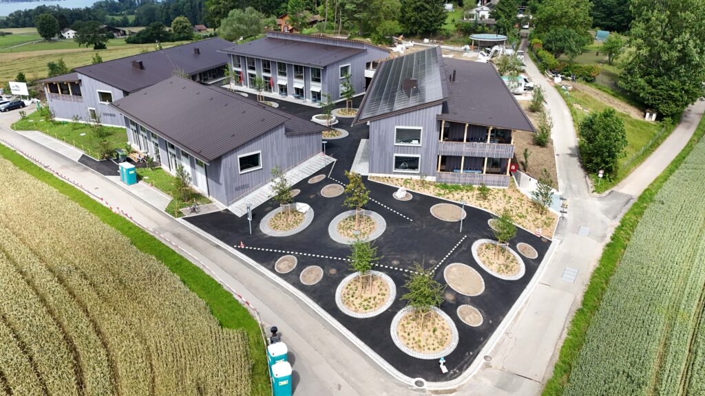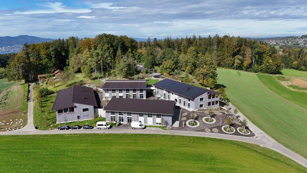 Für die Anlage Rütibühl der Martin Stiftung gestalteten unsere erfahrenen Gärtner das Terrain, erstellten Chaussierungen (naturnahe Beläge für die Versickerung des Wassers), diverse Natursteinbeläge, fassten mit Natursteinen die Rabatten ein, setzten Sträucher und Bäume inkl. der Unterpflanzung, legten Wiesenflächen an, bauten eine Brunnenanlage ein, erstellten ein Retentionsbecken und nahmen diverse Grab- und Kanalisationsarbeiten vor. Regelmässig gehen unsere Mitarbeitenden bei der Anlage vorbei, kontrollieren das Gedeihen der Pflanzungen und erfreuen sich am ästhetischen Anblick der Anlage.